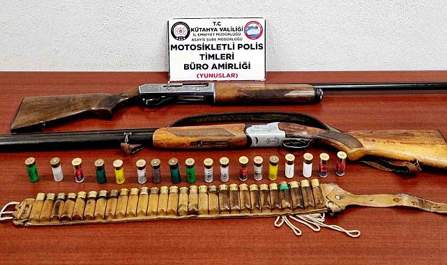 Kütahya'da Motosikletli Polis Timlerince 17 yaşındaki şahsın üzerinde 1 adet ruhsatsız tüfek ve 46 adet fişek ele geçirildi.Merkez Sultanbağı Mahallesi Gediz Caddesi üzerinde ateşli silah sesi olduğu yönündeki ihbar üzerine Asayiş Şube Müdürlüğüne bağlı Motosikletli Polis Timlerinin yakın adreste yaptığı çalışmalar sonucu Sultanbağı Caddesi üzerinde yaya halindeki Y.K. (17) isimli şahsın elinde bulundurduğu,1 adet ruhsatsız tüfek ve 46 adet fişek ele geçirildi.Gözaltına alınan Y.K. (17) ve beraberindeki eşi F.K. (16) gerekli yasal işlemlerin yapılabilmesi için Çocuk Şube Müdürlüğüne teslim edildi.