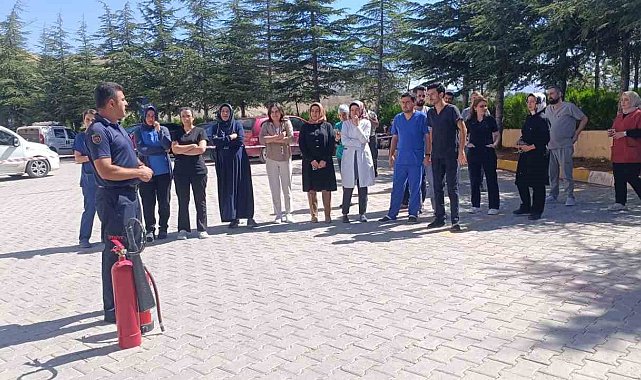 Malatya'nın Darende Hulusi Efendi Devlet Hastanesi'nde yangın söndürme tatbikatı yapıldı.Darende Hulusi Efendi Devlet Hastanesi'nde İl Sağlık Müdürlüğü ile Sivil Savunma ekipleri tarafında hastane çalışanlarına depremlerle ilgili bilgilendirmelerde bulunulduktan sonra yangın söndürme tatbikatı yapıldı.Tatbikat sonrası hastane acil toplanma alanında yangın tüplerinin kullanımına yönelik itfaiye ekiplerince uygulamalı eğitim verildi.