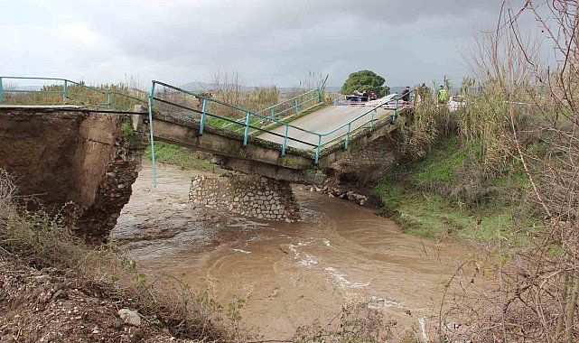 Manisa'da dün akşamdan itibaren etkili olan sağanak yağış derelerin debisinin artmasına neden olurken, Şehzadeler ilçesindeki Sarma Çayı üzerinde bulunan karayolu köprüsü yıkılırken, şehir merkezinden geçen Çaybaşı deresinin istinat duvarlarının bir kısmı heyelanla yıkıldı.