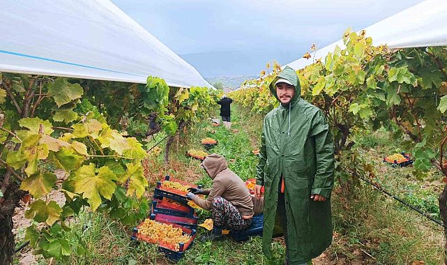 Manisa'nın Sarıgöl ilçesinin dünyaca ünlü Çekirdeksiz Sofralık Sultaniye Üzüm bağlarında yağmura, çamura, soğuğa rağmen hasat çalışmaları aralıksız olarak devam ediyor. Örtü altındaki üzümler kasım ayının son günlerinin gelmesine rağmen dalından taze taze kesilerek yurt içi ve yurt dışı pazarlarında sofraları tatlandırmaya devam ediyor.Kasım ayının sonlarına gelinmesine rağmen Manisa'nın Sarıgöl ilçesinde örtü altındaki üzümlerin yurt içi ve yurt dışı pazarları için kesimleri hız kesmeden aralıksız devam ediyor. Soğuk ve yağmurlu hava nedeniyle sıkı sıkı giyinen, ayaklarına bot yada çizmeler giyen, yağmurluk ile korunan üzüm işçileri üzüm kamyonu dolana kadar kesim ve yükleme işlerini soğuk havada yağmur altında ve çamurda yapıyor. Üzüm salkımları önceden temizlendiği için kesim ve yükleme işlemleri yağmur ve çamura rağmen kısa sürede tamamlanıyor.Sarıgöl ilçesi Bahadırlar Mahallesindeki üzüm üreticisi Raşit Öncü, üzüm bağında zor hava şartları altında üzümleri kesen işçilerinin ısınmaları için sürekli sıcak çay ikramında bulunuyor."Üzümler yurt içine"Manisa'nın Sarıgöl ilçesinden Sakarya'ya sebze ve meyve sevkiyatı yapan İbrahim Çamkıran, "Biz daha önceden üzüm kesimi için üreticiye gün verdik. Sabah erken saatlerde üzüm bağına girdik. Kesim ve kamyon yükleme devam ederken aniden yağmur başladı. Üzüm işçisi arkadaşlarımız bu tür olaylara alışık olduğundan yağmurluklarını giydi. Zaten kimi çizmesi kimi de botlarıyla üzüm bağına çalışmaya geliyor. Şiddetli yağmurda bağ evine sığınıyorlar. Bu arada sıra aralarında kalan kasaları da seleci arkadaşlar yağmurluklarını giyerek kamyona getirip dolması için gayret ediyor. Bu arada kesim yapan işçiler de sele taşıyan arkadaşlarına yağmur ve çamura rağmen yardım ediyorlar." dedi."Fedakarlık şart"Sezon boyunca aynı üzüm alıcısı ile çalışmakta olduklarını ifade eden üzüm işçileri bazen de fedakarlık yapmanın önemli olduğunu belirterek, sezon boyu aynı kişilerle çalıştıklarını ve bazen yağmur çamurda çalışmak zorunda kaldıklarını söyledi. Bağda kesilen üzümlerin yerde kasada beklememesi gerektiğini kaydeden işçiler, bu durumun hem bağ sahibine hem de alıcıya zarar verdiğini bu yüzden işlerini severek yaptıklarını vurguladı.Öte yandan, Sarıgöl ve çevresinde örtü altındaki 113 bin dekarlık alanda üzüm yetiştirildiği, temmuz ayında doğa olaylarına karşı örtü altına alınan üzümlerin hasadının bu sayede aralık ayının sonuna kadar hasadının devam ettiği öğrenildi.