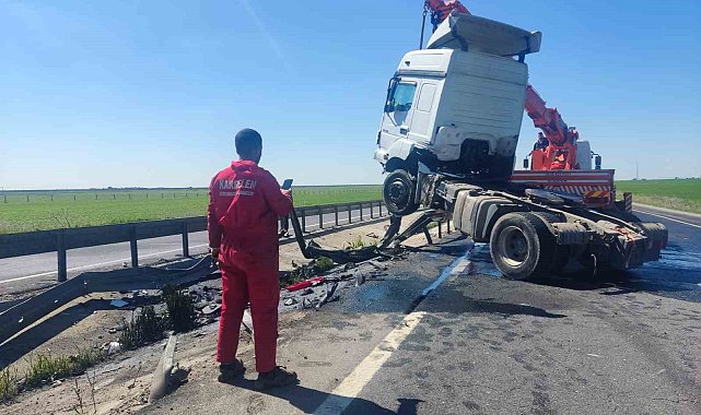 Mardin'in Nusaybin ilçesinde bariyerlere çarpan tırın sürücüsü yaralandı.Alınan bilgilere göre, dün akşam saatlerinde Uluslararası İpekyolu'nda seyir halindeki sürücüsünün ismi öğrenilemeyen 38 GG 110 plakalı tır, kontrolden çıkarak bariyerlere çarptı. Kazada sürücü yaralandı. İhbar üzerine olay yerine sağlık, itfaiye ve jandarma ekibi sevk edildi.Sürücü, ilk müdahalenin ardından Nusaybin Devlet Hastanesine kaldırıldı.Kaza ile ilgili inceleme başlatıldı.