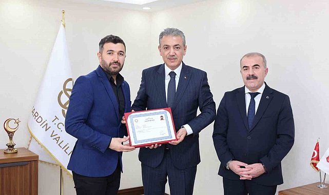 Mardin Valisi ve Büyükşehir Belediye Başkan Vekili Tuncay Akkoyun, Kızıltepe ilçesinde derste nefes borusuna madeni para kaçan öğrencisini hayatını Heimlich manevrasıyla kurtaran öğretmen Ferhat Erol'u başarı belgesi ile ödüllendirdi.