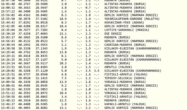 Dün saat 10.42'de yaşanan deprem Bursa ve çevre illerde hissedilirken, depremin ardından 24 saatte 100'den fazla farklı büyüklüklerde artçı yaşandı. Can ya da mal kaybının yaşanmadığı deprem, vatandaşlar arasında paniğe neden olurken Boğaziçi Üniversitesi Kandilli Rasathanesi Ve Deprem Araştırma Enstitüsü verilerine göre son 24 saat içinde Bursa ve Yalova illerinde 100'ün üzerinde farklı büyüklüklerde artçı meydana geldi.