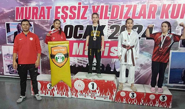 Menteşe Belediyespor Karate Takımı sporcuları Murat Eşsiz Yıldızlar Karate Şampiyonasında 2 Altın, 3 Gümüş, 2 bronz madalya kazandılar.Manisa'da düzenlenen ve 13 ilden 600 sporcunun katıldığı Karate Şampiyonasında Menteşe Belediyespor Karate Takımı sporcularından Elif Asya Coşkun minik kızlar kategorisinde, Girayhan Coşkun ise minikler kategorisinde Altın madalya kazandılar. Şampiyonanın Yıldız Kızlar kategorisinde 40 kiloda Aslı Melek Görgülü, 36 kiloda Zeynep Asya Eranıl ve Minik Kızlar 30 kilo kategorisinde Ceylin Ayşe Şimşek gümüş madalya kazanırlarken, Minik Kız 45 kiloda Tuana Hilal Güneş bronz madalya, Yıldız Kız 40 kilogram kategorisinde ise İlke Şenel bronz madalya kazandılar.Kupa kazanan sporcuları ve antrenörlerini tebrik eden Menteşe Belediye Başkanı Bahattin Gümüş, "Menteşe Belediyesi Karate Takımımız katıldığı her turnuvadan başarılarla, kupalarla dönüyor ve kazandıkları başarılarla Menteşemizi gururlandırıyorlar. Çocuklarımızın genç yaşta doğru yönlendirme ve disiplinli çalışma ile ne kadar başarılı olduklarını görüyoruz. Başarılarıyla bizleri sevindiren tüm sporcularımızı, antrenörleri ve ailelerini de tebrik ediyorum" dedi.