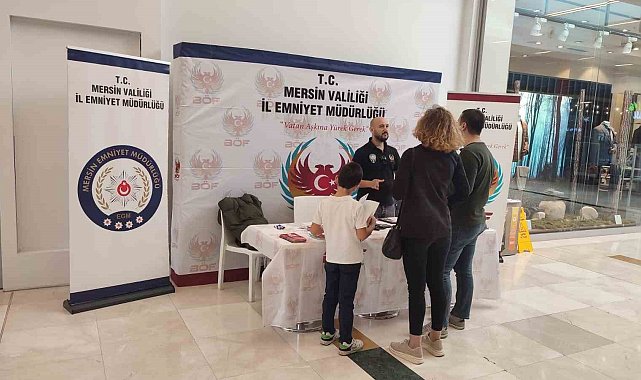 Mersin polisi, vatandaşları teröre karşı bilgilendirmeye devam ediyor.İl Emniyet Müdürlüğünden yapılan açıklamaya göre, Terörle Mücadele Şube Müdürlüğü ekipleri, vatandaşları bilgilendirmeye devam ediyor. Ekipler, son olarak kentte bulunan büyük alışveriş merkezlerinde stant açtı. Stantlarda terör örgütlerinin eleman kazanma yöntemleri, şüpheli paket, araç ve şahıslar, sosyal medyanın kullanımı gibi konularda vatandaşlar bilgilendirildi.