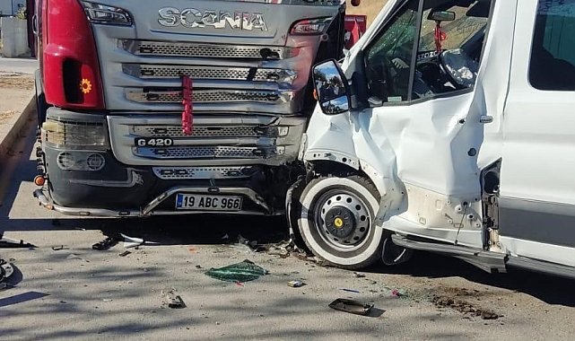 Çorum'da işçileri taşıyan servis minibüsünün otomobil ve tıra çarptığı kazada, 14 kişi yaralandı.Kaza, Çorum-Ankara kara yolunda meydana geldi. Edinilen bilgilere göre, Emirhan Keskin yönetimindeki 19 S 0196 plakalı minibüs, Derya Demirci yönetimindeki 19 ABD 099 plakalı otomobile çarptı. Çarpmanın etkisiyle savurulan minibüs daha sonra park halindeki 19 ABC 966 plakalı tıra çarptı. Kazada minibüs ve otomobilde bulunan 14 kişi yaralandı. Yaralılar, sağlık ekiplerinin ilk müdahalenin ardından ambulanslarla kentteki hastanelere kaldırıldı. Yaralıların sağlık durumlarının iyi olduğu belirtildi.Kaza ile ilgili başlatılan inceleme sürüyor.