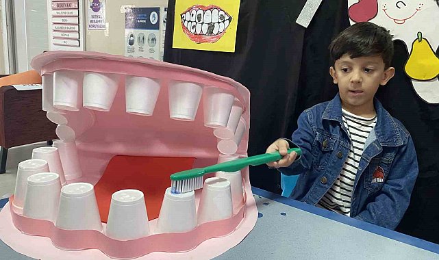 Sağlık ekiplerinin eğitimlerinden sonra, anaokulu öğretmenleri sınıflarında yaptıkları diş maketi üzerinde diş fırçalama yaptırarak minik öğrencilerin aldıkları eğitimi pekiştirmelerini sağladı.