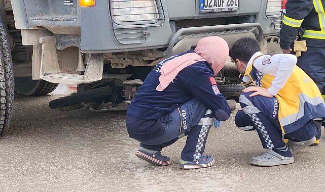Adıyaman'da kamyonun altına giren motosiklette bulunan 1 kişi hayatını kaybederken, 1 kişi de yaralandı.Feci kaza, Adıyaman Küçük Sanayi Sitesi Kavşağı yakınlarında meydana geldi. Adıyaman istikametinden Gölbaşı istikametine giden Orhan A. yönetimindeki 02 ADF 261 plakalı kamyon yolun sağına dönmek istediği esnada, petrol istasyonunun içinden gelen Mehmet Can Taşkıran (19) yönetimindeki motosiklet ile çarpıştı.Kazada motosiklet kamyonun altına girerek, tekerin altında kaldı. Motosiklet sürücüsü de tekerin altında kalarak can verdi. Motosiklette yolcu olarak bulunan bir şahıs ise kazadan yaralı olarak kurtuldu.Kaza yerine çok sayıda polis ekibi ve ambulans geldi. Yaralı, yapılan ilk müdahalenin ardından Adıyaman Eğitim ve Araştırma Hastanesi'ne kaldırıldı.Kamyonunun altında kalan motosiklet sürücüsünün cansız bedeninin çıkartmak için olay yerine vinç çağrıldı. Kamyon vinç yardımı ile kaldırılarak, motosiklet ve sürücüsü tekerin altından çıkartıldı. Olay yeri inceleme ekiplerinin çalışmasının sonrasında motosiklet sürücüsünün cansız bedeni Adıyaman Eğitim ve Araştırma Hastanesi morguna kaldırıldı.