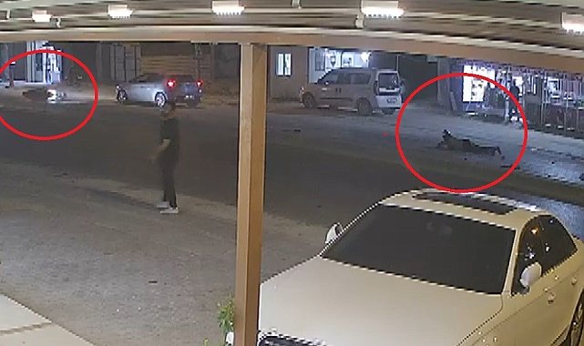 Hatay'ın Antakya ilçesinde rögar kapağının yerinden oynamasıyla motosiklet sürücüsünün uçarak metrelerce sürüklendiği anlar güvenlik kamerasına yansıdı.
