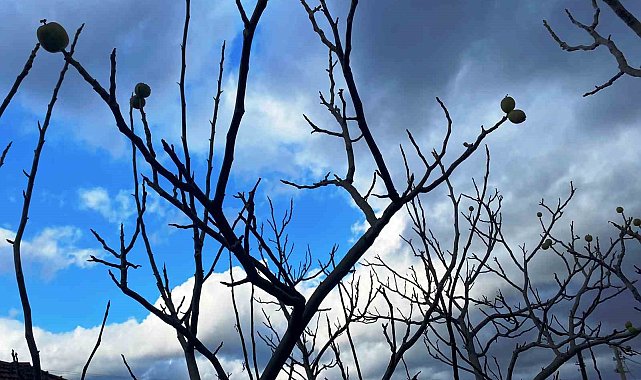Mevsim normallerinin üzerinde seyreden hava sıcaklıkları Manisa'nın Alaşehir ilçesinde bir ceviz ağacının yeniden meyve vermesine neden oldu. Üzerinde tek bir yaprak bile kalmayan ceviz ağacının meyve verdiğini gören yaşlı çiftçiler ise böyle bir durumla ilk kez karşılaştıklarını söyledi.Hava sıcaklıklarının mevsim normallerinin üzerinde seyretmesi Manisa'nın Alaşehir ilçesinde yapraklarını döken ceviz ağacı ikinci kez meyve verdi. Görenleri hayrete düşüren olay Alaşehir'in Hacıaliler Mahallesi'nde yaşandı. Yapraklarını tamamen döken ceviz ağacını budamaya giden çiftçiler onlarca cevizi ağaç dallarında görünce hayrete düştüler. Ağaçların sahibi ve komşuları cevizleri toplayıp kırarak yedi. Cevizlerin olgunlaşmış olmasına da şaşıran çiftçiler hayatlarında ilk kez böyle bir olaya tanıklık ettiklerini söyledi.Alaşehir Hacıaliler Mahallesi'nde oturan Hayriye Peker (61), evlerinin bahçesinde bulunan ceviz ağacını budamak için gittiklerinde ağacın meyve verdiğini gördüklerini söyledi. Peker, "Yaprak açtığını biliyorduk ama meyvesi olduğunu bilmiyorduk. Ağacın yapraklarının arasına baktığımızda ceviz verdiğini gördük, şaşırdık kaldık. Cevizlerden birkaç tane kırdık, baktık ki normal ceviz. O zaman budamayı bıraktık. Cevizlerin olgunlaşmasını bekledik, kabukları çatlayarak, olgunlaştılar hasat ettik. Kırıp bakıyoruz, içleri de normal ceviz meyvesinin aynısı. Bu yıl ikinci hasadı yaptık. Yaşım 61, bu yaşıma kadar böyle bir şey görmedim. Havalar sıcak gitti. Ona bağlıyoruz. Bağlarda da aynısı oldu. Her şey öyle. Evin önündeki çiçekler bile açıyor. Hiç kış yaşamadık" dedi.Peker ailesinin komşuları olan Ömer Yaşar ise şunları söyledi: "Komşunun ceviz ağacını bende ilk defa gördüm. Halbuki ceviz çoktan toplanmış olması lazım. Havanın sıcak gitmesinden dolayı tekrar ceviz vermiş. Cevizleri dalında gördük. 71 yaşımdayım böyle bir şeye hiç şahit olmadık, ilk defa görüyorum. Hava şartlarından kaynaklanıyor".