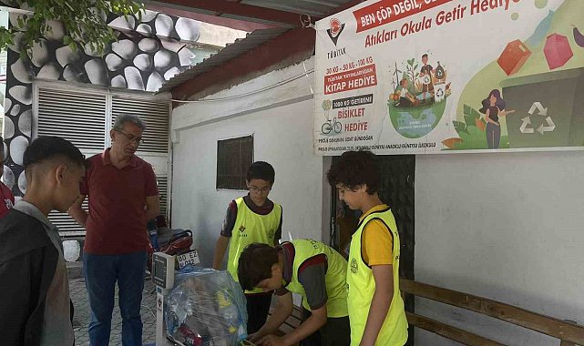 Osmaniye'de ortaokul öğrencilerinin hayata geçirdikleri "Ben çöp değil, geri dönüşebilir atığım" projesi çerçevesinde ödül almak isteyen öğrenciler, evdeki çöplerini okula getirip, geri dönüşüme katkı sağlayarak "Sıfır Atık" projesine destek oluyorlar.Osmaniye 75. Yıl Ortaokulu öğrencilerinin hazırladığı proje ile evde bulunan geri dönüşüm atıklarını okula getiren öğrenciler, proje ekibi tarafından programlanan manav terazisinden okul numaralarına göre etiketlerini alarak atıkları teslim ediyorlar. Öğrenciler biriktirdikleri etiketlerle hedeflenen miktarlara ulaştığında TÜBİTAK yayını dergiler, akıl zeka oyunları, tablet bilgisayar ve bisiklet gibi çeşitli hediyeler kazanıyor. Adana'da düzenlenen TÜBİTAK 2204-B Ortaokul öğrencileri araştırma projeleri yarışmasında bin 219 proje arasından "Ben Çöp Değil, Geri Dönüşebilir Atığım" isimli proje bölge birincisi olan öğrenciler 26-30 Mayıs tarihleri arası Ankara'da düzenlenecek olan Türkiye Finallerinde Osmaniye'yi temsil edecek.Proje hakkında bilgi veren 5.sınıf öğrencisi Eyüp Eymen Kırıcı, "Biz okulumuzdaki geri dönüşüm kutularına çok geri dönüşüm atıkları atılmadığı için biz bir proje yaptık. Bu projenin ismi 'Ben Çöp Değil Geri Dönüşebilir Atığım.' Bu projede okullarımıza geri dönüşüm kutuları aldık. Sonra manavlarda olan tartılardan bir tane aldık. Burada gördüğünüz gibi bu terazinin veri tabanına öğrencinin numarasını ve ismini yazdık. Öğrenciler bir miktar atık toplayıp bize getiriyorlar. Burada görevli arkadaşlarımız kiloları, geri dönüşüm atıklarını teraziye koyuyor, terazide tartıyoruz. Mesela bir öğrenci 5 kilogram atık getirmiş. Biz bir etiket çıkartıyoruz öğrencinin numarasına göre o etikette öğrencinin ismi, kaç kilo getirdiği yazıyor" dedi.Proje çerçevesinde 45 günlük sürede 20 ton civarı atık malzeme toplamayı başardıklarını söyleyen 5. sınıf öğrencisi Tunahan Toklu, "Etiketleri biriktiriyorlar 30, 50, 70 kilogram getirene TÜBİTAK kitapları, 500 kilogram getirenlere tablet, bin kilogram getirenlere bisiklet veriyoruz. Toplam 20 ton kadar geri dönüştürebilen atık topladık. Bunları geri dönüşüm firmasına verdik, elde ettiğimiz parayla okul aile birliğini bağışladık ve okulumuzun ihtiyaçlarını karşıladık" diye konuştu.Geri dönüşüme katkının eğitimin merkezi olan okullardan başlayacağına farkında olduklarını söyleyen proje danışmanı Bilişim Teknolojileri Öğretmeni Sedat Gündoğan, "Okulumuzda TÜBİTAK 2204 Ortaokul Öğrencileri Araştırma Projeleri yarışmasına hazırlık kapsamında bir geri dönüşüm projesi hazırladık. Ben Çöp Değil Geri Dönüşebilir Atığım ismini verdiğimiz proje kapsamında çocuklarımızı geri dönüşüm konusunda bilinçlendirme çalışmaları yaptık. Akabinde çocuklarımızın evlerden atıklar getirmeleri konusunda bir organizasyona giriştik. Çocuklar günlük olarak evde biriktirmiş oldukları geri dönüşüm atıklarını sabah okula getirerek programladığımız tartıyla tarttırıp bir etiket karşılığında teslim ettiler. Geri dönüşüm atıklarımızı belirli periyodlarda geri dönüşüm firmasına teslim ederek geri dönüşüme katkı sağlamaya çalıştık. Projemiz kapsamında aslında evlerde birçok atığımızın geri dönüşüm atığı olduğunu fark ettik. Şöyle ki birçok velimiz işte üçte ikilik oranında atmış olduğu atığın aslında geri dönüşüm atığı olduğunu fark etti. Çocuklarımız bu işin merkezinde yer aldıkları için ebeveynlerini uyardılar ve geri dönüşüme katkı sağladılar. Bu doğrultuda 45 günlük yapmış olduğumuz çalışmada 20 ton civarında bir atık toplamak nasip oldu. Projemiz Adana bölge yarışmasında birinci olarak seçildi. Şu an ilimizde beş farklı okulumuzla aynı şekilde geri dönüşüm atıkları toplanıyor. Toplanan atıklar karşılığında çocukları motive edebilmek için çeşitli hediyeler de dağıttık. Aslında doğamızı, çevremize karşı görevimiz olan geri dönüşüme katkının eğitimin merkezi olan okullardan başlayacağına farkındayız ve bu noktada tüm okullarımızı bu projeye destek vermeye davet ediyoruz" dedi.
