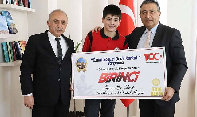 Özüm Sözüm Dede Korkut Yarışması'nda dereceye giren ama İstanbul'daki büyük şölene katılmayan öğrencilerin ödülleri Bayburt'ta verildi.Bayburt Kültür ve Yardım Derneği öncülüğünde İstanbul'daki Bayburt derneklerinin katkıları ile gerçekleşen Özüm Sözüm Dede Korkut Yarışması'nda dereceye giren öğrencilerin ödülleri geçtiğimiz günlerde İstanbul'da düzenlenen Türk Dünyası Gençlik Şöleni'nde verilmişti. 4 bin kişinin katıldığı organizasyonda İstanbul'dan 18, Bayburt'tan 18 olmak üzere 36 öğrenci Dede Korkut konulu yarışmada dereceye girmişti. Bayburt'tan dereceye giren ve İstanbul'daki şölene katılan öğrenciler iki gün boyunca İstanbul'un tarihi mekanlarını gezmiş ve Haliç Kongre Merkezi'ndeki şölende ödüllerini almıştı.Dereceye giren ve ödüllerini alamayan öğrenciler ise şölen komitesi tarafından Bayburt Milli Eğitim Müdürlüğüne ulaştırılan ödüllerini, İl Milli Eğitim Müdürü Rahmi Güney'in elinden aldılar.