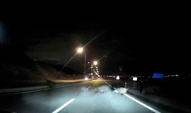 Sivas'ta aracı ile seyir halindeyken önüne domuz sürüsü çıkan sürücü domuza çarptı.