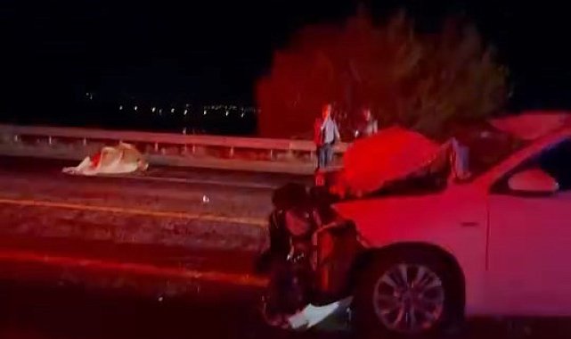 Elazığ'da otomobilin ineğe çarpması sonucu meydana gelen kazada, 2 kişi yaralanırken inek ise telef oldu.