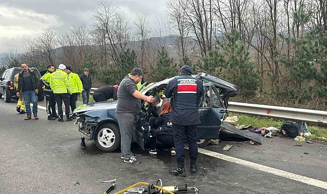 Anadolu Otoyolu Düzce geçişinde iki aracın çarpıştığı kazada hurdaya dönen otomobilde 1 kişi öldü. Kazada 2'si ağır 5 kişi yaralandı.Kaza, Anadolu Otoyolu Kaynaşlı Sarıçökek mevkiinde meydana geldi. Edinilen bilgilere göre, İstanbul'dan Ankara istikametine seyir halinde olan Hakan Ç. idaresindeki 34 GOJ 61 plakalı Fiat marka otomobile aynı istikamette seyir halinde olan İsmet K. idaresindeki 34 DD 9891 plakalı Range Rover marka cip çarptı. Çarpışmanın etkisi ile Fiat marka otomobil paramparça oldu. İhbar üzerine bölgeye sağlık, polis, itfaiye ve jandarma ekipleri sevk edildi. Otomobilde sıkışan yolcular itfaiye ekiplerince çıkarılıp sağlık ekiplerine teslim edildi. Kazada Ali Ç., Hakan Ç., Duygu Ç., Mira Ç.(1) ve İsmet K. ambulanslarla hastaneye kaldırıldı. Otomobil içerisinde bulunan Feride Çırçır ise hayatını kaybetti. Kaza sebebiyle tek şeritten verilen yol, araçların kaldırılmasının ardından 2 şeritten verildi. Cumhuriyet savcısının incelemesinin ardından ceset morga kaldırıldı. Kaza ile ilgili soruşturma başlatıldı.