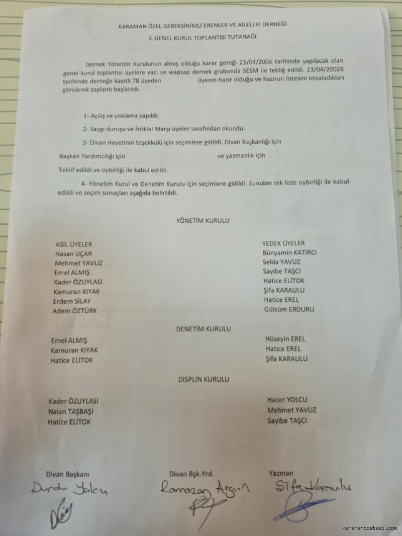 ÖZEL GEREKSİNİMLİ BİREYLER İÇİN KARAMAN'DA BİR İLK: GENEL KURUL YAPILDI