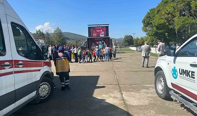 DÜZCE (İHA) – Düzce İl Sağlık Müdürlüğü ekipleri Köprübaşı Ömer Efendi Köyünde bulunan Özel Eğitim ve Uygulama okulunca öğrencilere UMKE ve ambulans tanıtımı yaptı.İçişleri Bakanlığı tarafından desteklenen Mekansız Tiyatro projesi çerçevesinde Köprübaşı Ömer Efendi köyünde Özel Eğitim ve Uygulama okuluna gitti. Burada özel öğrencilere tiyatro etkinliği gerçekleştirildi.Düzce İl Sağlık Müdürlüğü ekipleri de tiyatro etkinliğine giderek burada özel öğrencilere Ulusal Medikal Kurtarma ekibi ve 112 Acil Ambulanslar ile ilgili bilgilendirme tanıtımı gerçekleştirildi.