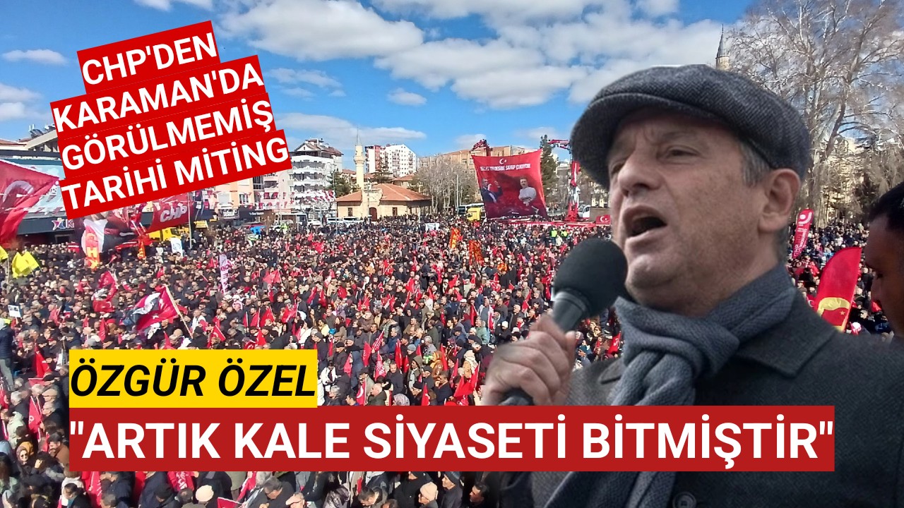 https://www.instagram.com/reel/DVlhrCXibgR/?igsh=bW9jZWU4ZmE0bXlmKaraman’da mitingde büyük kalabalıkCumhuriyet Halk Partisi Genel Başkanı Özgür Özel’in Karaman’da düzenlediği mitingde meydan doldu taştı. Vatandaşların yoğun ilgi gösterdiği programda miting alanı tamamen dolarken kalabalık bariyerlerin dışına kadar taştı.Karaman’da uzun yıllardır görülmeyen yoğunlukta katılımın olduğu mitingde vatandaşların coşkusu dikkat çekti. Meydanda Türk bayraklarıyla toplanan kalabalık, konuşmaları sık sık alkış ve sloganlarla destekledi. CHP Genel Başkanı Özgür Özel, Karaman’da düzenlenen “Millet İradesine Sahip Çıkıyor” mitinginde konuşarak ekonomi, demokrasi ve Karaman’ın sorunlarına ilişkin açıklamalarda bulundu“Karaman kimsenin kalesi değil milletin kalesidir”