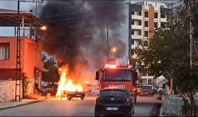 Hatay'ın Hassa ilçesinde park halindeki bir otomobil alev alev yandı.Edinilen bilgiye göre, akşam saatlerinde Hassa ilçesi Akbez Mahallesi'nde park halindeki bir araç alevlere teslim oldu. Olayı gören vatandaşlar durumu 112 acil çağrı merkezine bildirdi. Olay yerine kısa sürede itfaiye ekibi sevk edildi. Ekipler yangına kısa sürede müdahale ederken, araç kullanılmaz hale geldi.