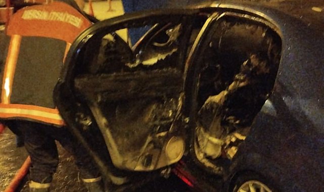 Mersin'in Tarsus ilçesinde park halindeki otomobil yandı.