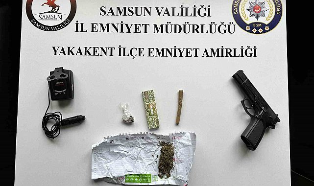 Samsun'da uygulama noktasında şüpheli araçlar üzerinde arama yapan polis, radar tespit cihazı ve uyuşturucu madde ele geçirdi.Edinilen bilgiye göre, Samsun'un Yakakent ilçesi Liman Mahallesi'ndeki polis uygulama noktasında şüpheli araçlar üzerinde arama yapan Yakakent İlçe Emniyet Amirliği ekipleri, 1 adet kurusıkı tabanca, 1 adet radar tespit cihazı, 1 gram kenevir tohumu, 2.1 gram esrarlı sigara, 8.8 gram esrar ve 1 adet sarma kağıdı ele geçirdi. Olayla ilgili 2 kişi hakkında yasal işlem başlatıldı.