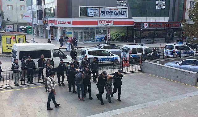 Tekirdağ Çerkezköy'de iddiaya göre uygulamadan kaçan bir kişiyi evinde gözaltına almak isteyen polis ekiplerine mukavemete bulunan ikisi kadın toplam 6 şüpheli yakalanarak gözaltına alındı. Polislere mukavemette bulunduğu iddia edilen şüpheliler, geniş güvenlik önlemleri altında Çerkezköy Adliyesine getirildi.Çerkezköy İlçe Emniyet Müdürlüğü ekipleri, ilçenin huzur ve güvenliğini sağlamak amacıyla çeşitli noktalarda uygulamalarını sürdürüyor.Bu kapsamda ekipler, Bağlık Mahallesi'nde yaptıkları uygulamada durumundan şüphelendikleri S.E.'yi durdurmak istedi. Uygulamadan kaçan şüpheliyi yakalamak için S.E.'nin adresine giden polis ekiplerine iddiaya göre şüphelinin yakınları S.E., E.Y., C.E., A.E., C.S. ve C.E. taş, sopa ve bıçaklarla saldırarak mukavemette bulundu.Uygulamadan kaçan şüpheliyi gözaltına almak isteyen 5 polis memuruna saldırdığı iddia edilen 6 şüpheli yakalanarak gözaltına alınırken, şüphelilerin üzerinde ele geçirilen 3 bıçağa da el konuldu. Öte yandan polisin elinden kaçan S.E. kayıplara karışırken, polis ekipleri şüpheliyi yakalamak için geniş çaplı soruşturma başlattı. İfadeleri alınmak üzere Gazi Polis Merkezi Amirliğine götürülen şüpheliler, ifadelerinin ardından geniş güvenlik önlemleri altında Çerkezköy Adliyesine sevk edildi.