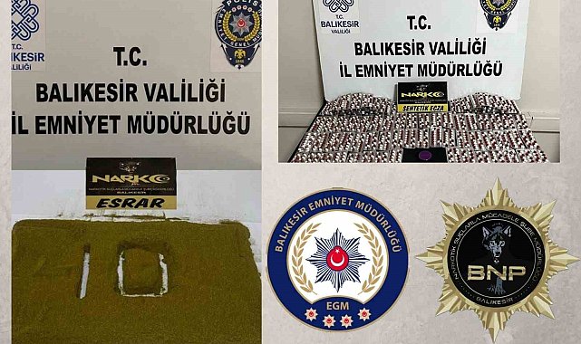 Balıkesir'in Karesi ve İvrindi ilçelerinde narkotik polis ekiplerinin 2 ayrı operasyonda 2 şahsa uyuşturucu operasyonu düzenlendi. Polis ekipleri operasyonlarda bin 357 sentetik hap ve 256 gram toz esrar ele geçirildi.Balıkesir İl Emniyet Müdürlüğü narkotik ekipleri projeli çalışma dahilinde, Karesi ve İvrindi ilçelerinde 2 ayrı operasyonda; bin 357 adet sentetik hap, 256 gram toz esrar ele geçirildi. Operasyonlarda yakalanan 1 şahıs tutuklanırken, diğer şüpheli şahıs hakkında tahkikatın devam ettiği öğrenildi.Uyuşturucu madde satıcılığı yapanlar ve suçlularla mücadelenin aralıksız devam edeceği açıklandı.