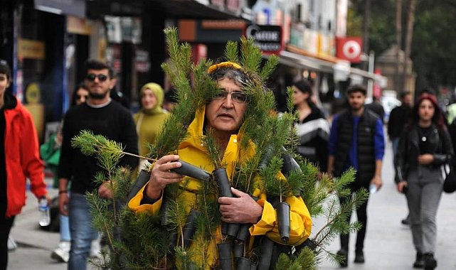 Erzincan'da sarı renkli yağmurluk üzerine vücudunun tamamına çam fidanlarını asıp cadde ve sokakları yürüyen profesörün halini görenler gözlerine inanamadı.Erzincan Binali Yıldırım Üniversitesi Güzel Sanatlar Fakültesi Dekanı, sanatçı ve akademisyen Prof. Dr. Mehmet Kavukcu, 'Milli Ağaçlandırma Günü'nde yeni bir performans gerçekleştirdi. 11 Kasım 2021 tarihinde başlayan süreçte; kendi diktiği fidanın doğum gününü kutladığı "Bir Bitki Bir Selfie: Doğum Günü Performansı" isimli çalışmasını gerçekleştirdi. Bu fidanı, kendi kızının adı olan 'Esma İdil' ve çevresindeki fidanları da 'Esma İdil'in arkadaşları' olarak isimlendirmişti. Prof. Dr. Kavukçu, 11 Kasım 2022 tarihinde de okuldaki öğrenci ve arkadaşları ile birlikte fidanın ikinci yaş gününü kutlamak üzere selfieler çekerek yola çıkmıştı. 2021 yılında, kendi diktiği fidana hediye olarak toprak götürerek geçen seneki performansında da ona getirdiği kozalakları hediye etmişti. Kavukçu, 2023 yılında gerçekleştirdiği performansında ise; 12 Kasım tarihinde olan kendi doğum günüyle fidanın doğum gününü birleştirerek kızının pastayla birlikte hediye verdiği kozalak ve yapraklarla başlayan sürecin ardından, fidanın 3. yaş gününü kutlayacağı çalışmasını, bitkiye dönük bir performansla tamamladı. İnsan ve doğa arasındaki ilişkiyi vurgulayan çalışma, insanlara özgü doğum günü kutlama geleneğini, kendi doğum günü ve fidanın doğum gününü birlikte kutlayarak insandan doğaya dönen bir ritüele dönüştü.Kavukcu, Erzurum'dan Erzincan'a giderken yolculuğu sırasında; çalılar ve sonbahar renklerini bünyesinde barındıran yapraklar gibi doğada bulduğu malzemeleri kendi çalışma ilkeleri doğrultusunda toplayarak alışveriş filelerinin içerisinde taşıdı. Erzincan'a vardığında da önceki çalışmalarında olduğu gibi orman yangınlarına dikkat çekmek amacıyla yangından zarar görmüş bir ağacı; kimi zaman kaldırımda, kimi zamansa araç trafiğinin devam ettiği alanlarda sürüklediğine benzer şekilde bu kez; gerçekleştirdiği yolculuk sırasında topladığı doğal malzemelerle birlikte, vücuduna tüp poşetlerinde yer alan fidanları bağlayarak kent merkezinden fidan dikim alanına kadar yürüdü.Kavukcu, vücudunu kaplayan doğal malzemeler ve çok sayıdaki fidan tüpleriyle adeta yürüyen fidanlığa/ağaca dönüştü.Yürüyüşün ardından, toprağa diktiği fidanın yanına geldiğinde, kızının ismini verdiği fidanı ve onun arkadaşları olan diğer fidanları selamlayarak doğum gününü kutlayıp insani özellikler üzerinden bir davranış sergiledi.