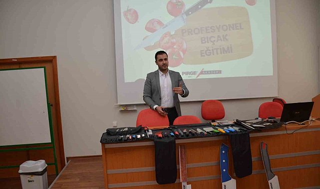 Anadolu Üniversitesi Eskişehir Meslek Yüksekokulu (EMYO) Aşçılık Bölümü tarafından düzenlenen 'Pirge Bıçakları Profesyonel Bıçak Eğitimi ve Bıçak Kullanımı' semineri EMYO Seminer Salonu'nda gerçekleştirildi.EMYO Aşçılık Bölümü öğretim elemanı Öğr. Gör. Mutlu Doğan'ın koordinatörlüğünde gerçekleşen seminerde konuşmacı olarak Pirge Akademi'den Eğitmen Fırat Erbil yer aldı. Düzenlenen seminerde eğitmen Fırat Erbil, EMYO öğrencileri ile bir araya gelerek profesyonel mutfaklarda kullanılan bıçakları tanıttı ve dünya mutfaklarında kullanılan bıçak çeşitlerini verimli kullanma teknikleri üzerine bir sunum gerçekleştirdi. Seminerin sonunda gerçekleştirilen çekiliş ile üç öğrenciye şef bıçağı hediye edildi. Etkinliğin bitiminde Öğr. Gör. Mutlu Doğan, eğitmen Fırat Erbil'e teşekkür belgesi ve hediye takdim etti.