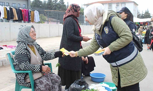HATAY (İHA) – Hatay'da polis ve jandarma ekipleri, kadına yönelik şiddetle mücadelede farkındalığı artırmak amacıyla pazarda broşür dağıttı.Reyhanlı İlçe Emniyet Müdürlüğü, Reyhanlı İlçe Jandarma Komutanlığı ve Reyhanlı Psikososyal Destek Birimi, 25 Kasım Kadına Yönelik Şiddete Karşı Uluslararası Mücadele Günü çerçevesinde bir araya gelerek bilinçlendirme etkinliği düzenledi. Pazar alanında kadına yönelik şiddetle mücadelede farkındalığı artırmak amacıyla broşür dağıtımı yapıldı.Reyhanlılı kadınlara güvenlik önlemlerini ve acil durumlarda kullanılan KADES (Kadına Acil Destek) uygulamasını anlatan yetkililer, vatandaşları bilinçlendirdi.