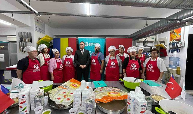 Yunus Emre Enstitüsü, dünyanın farklı noktalarında bulunan temsilciliklerinde gerçekleştirdiği gastrodiplomasi faaliyetleriyle Türkiye'nin gastronomi zenginliğini tanıtmaya ve Türk mutfağının damaklarda iz bırakan lezzetlerini çok sayıda ülkenin sofrasına taşımaya devam ediyor.Bükreş Yunus Emre Enstitüsü tarafından Romanya'da Türk mutfağına duyulan yoğun ilginin karşılanması amacıyla düzenlenen "Türk Mutfağı Atölyesi"nin ikincisi gerçekleştirildi. Gastronomi etkinliğinin ana menüsünde Türk mutfağının zeytinyağlı yemekleri yer aldı.Şef Remziye Asan tarafından kursiyerlere Türk mutfağının geleneksel malzemelerinden, Türk mutfağının yemek kültürüne kadar gastronomiye dair birbirinden değerli bilgiler paylaşıldı. Şef Asan, ilk olarak menüde yer alan mercimek çorbasının yapımıyla ilgili bilgiler verdikten sonra kursiyerlerle birlikte çorbanın yapımına başladı.Şef Remziye Asan'ın eğitmenliğinde gerçekleşen atölyede Rumen katılımcılar yemeklerin tarihi, hazırlanışı ve kullanılan malzemelerin çeşitliliği karşısında hayranlıklarını gizleyemedi.Mercimek çorbasının hazırlanmasının ardından her bir katılımcı özenle sardığı yaprak sarmalarını ve içlerini doldurduğu biber, domates, patlıcan ve kabak dolmalarını kendi tenceresine yerleştirerek pişirdi. Yemeğin kokuları mutfağı doldururken katılımcılara Türk kahvesi ve çayı ikram edildi.Erasmus Projesi kapsamında Bükreş'te bulunan Osmaniye Düziçi Atatürk Mesleki Teknik ev Anadolu Lisesi Aşçılık Bölümü öğrencileri de yörelerine ait şakşuka, mücver, çiğ köfte ve salata hazırladılar. Her bir öğrenci yaptığı işlemleri püf noktalarıyla birlikte Rumen kursiyerlere anlattı.İştah açan lezzetlerin son bölümünde tatlıya sıra gelince bütün kursiyerler ilgiyle şeflerini diledi. Kursiyerler, Osmanlı saray mutfağından ve Ramazan ayının vazgeçilmezi olan güllaç ile Osmaniye'ye ait yoğurtlu kömbe hazırladı.SELEC Genel Müdürü Oğuz Serkant Akın, Türkiye Cumhuriyeti Bükreş Büyükelçiliği Ticaret Müşaviri Naci Akdoğan ve eşi Merve Akdoğan'ın da katılımıyla hazırlanan yemekler hep birlikte sohbet eşliğinde yendi.Romanya Yunus Emre Enstitüsü Koordinatörü Mustafa Yıldız, atölyede kursiyerlere Türk üretimi zeytinyağı ve kullanım alanlarıyla ilgili bilgiler verdi.Koordinatör Yıldız, "Türk mutfağında sıfır atık teknikleriyle kalan her parça yiyeceğin bambaşka bir ürüne dönüşerek sürdürülebilirliğe katkıda bulunulduğunu ve aynı zamanda Türk yemeklerinin özelliklerinin bilinerek buna göre tüketilmesinin ruh ve beden sağlığı arasındaki dengeyi gözeten şifa kaynağı olma özelliğini gastronomi atölyemiz aracılığıyla ortaya çıkarmak istedik" değerlendirmesinde bulundu.Türk mutfağının binlerce yıllık lezzetlerinin hazırlanması ve gastronomiye dair sohbetler başta olmak üzere Türkiye'nin mutfak kültürünün benzersiz unsurlarının tanıtıldığı "Türk Mutfağı Atölyesi", kursiyerlere belgelerinin takdim edilmesiyle sona erdi.