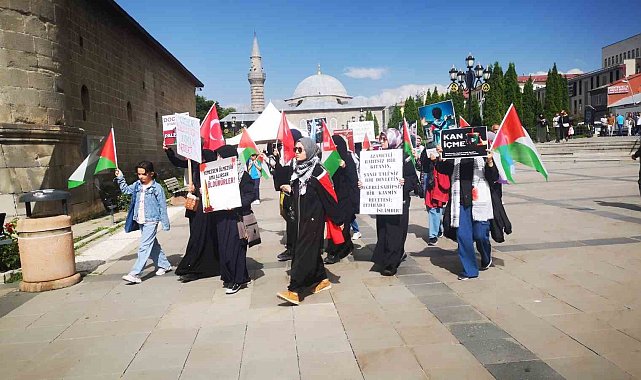 Yakutiye Kent Meydanı Lala Paşa Cami önünde buluşan doktorlar, tıp fakültesi öğrencileri ile sağlık çalışanları, ellerinde Türk ve Filistin bayrakları ile Yakutiye Medresesi'ne kadar yürüdü.