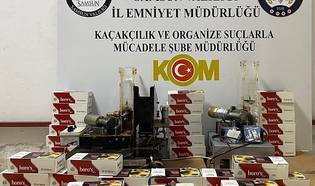 Samsun'da emniyet ekipleri tarafından düzenlenen operasyonda sigara sarma makineleri ve kaçak tütün ele geçirildi.Samsun İl Emniyet Müdürlüğü ekiplerinin, kaçakçılık faaliyetlerine karşı yürüttüğü başarılı operasyonlar hız kesmeden devam ediyor. İlkadım ilçesinde gerçekleştirilen son operasyonda, kaçak tütün ticareti yaptığı tespit edilen şahıslara yönelik baskın düzenlendi. Operasyon kapsamında yapılan aramalarda 2 adet elektrikli sigara sarma makinası, 1 adet manuel sigara sarma makinası, 6 bin adet boş makaron, 400 adet doldurulmuş makaron sigara, 100 adet TAPDK bandrolü, 15 kilogram kaçak tütün ele geçirildi.Olayla ilgili yakalanan 2 şahıs hakkında Kaçakçılıkla Mücadele Kanunu'na Muhalefet suçundan yasal işlem başlatıldı.