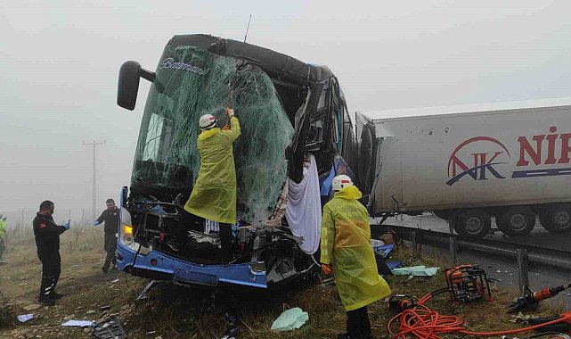 Şanlıurfa'da yolcu otobüsü ile iki tırın karıştığı trafik kazasında 1 ölü kişi öldü, 15 kişi de yaralandı.Edinilen bilgiye göre, kaza, Şanlıurfa - Gaziantep otoyol bağlantı noktasında meydana geldi. Sabah saatlerinde yoğun yağış ve sis nedeniyle İzmir'den Batman'a seyir halindeki yolcu otobüsü ve 2 tır çarpıştı. Kazanın ardından çevredeki vatandaşların ihbarı üzerine olay yerine sağlık, polis, jandarma ve itfaiye ekipleri sevk edildi.Otobüs şoförü olay yerinde öldüKazada, yaralılar ihbar üzerine olay yerine giden sağlık ekiplerince ambulanslarla kent merkezindeki çeşitli hastanelere kaldırıldı. Şoför koltuğunda sıkışarak ağır yaralanan otobüs şoförü İlhami Dokdemir'in (58) ise sağlık ekiplerince yapılan kontrolde yaşamını yitirdiği belirlendi. İtfaiye ekiplerince sıkıştığı yerden çıkarılan Dokdemir'in cenazesi, otopsi işlemleri için Şanlıurfa Adli Tıp Kurumu morguna kaldırıldı.Kaza nedeniyle Şanlıurfa - Gaziantep otoyol bağlantı noktası trafiğe kapatıldı. Kazayla ilgili soruşturma sürüyor.