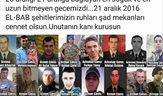 Dün akşam saatlerinde çıkan çatışmada şehit düşen Mehmet Serinkan'ın 2016 yılında yaralanan ağabeyi Hüseyin Serinkan'ın bir gün önce sosyal medya hesabı üzerinden yaralandığı çatışmada şehit düşen arkadaşlarını yad ettiği görüldü.Dün akşam saatlerinde bölücü terör örgütü tarafından yapılan saldırı sonucu şehit düşen 6 askerden biri olan Mehmet Serinkan'ın şehadet haberi Denizli'de yaşayan ailesine verildi. Şehidin ağabeyi olan Hüseyin Serinkan'ın da 2016 yılında Fırat Kalkanı operasyonu sırasında Suriye'nin Elbab kentinde yaralanarak gazi olduğu öğrenildi. Şehit ağabeyi kardeşinin şehadetinden bir gün önce sosyal medya hesabından yaptığı paylaşımda yaralandığı çatışmada şehit düşen arkadaşlarını yad ettiği dikkat çekti. Hüseyin Serinkan'ın 21 Aralık'ta yaptığı paylaşımda, "8 yıl oluyor Fırat Kalkanı operasyonu Suriye Elbab'da 20 Aralık'ı 21 Aralık'a bağlayan en soğuk gece ve en bitmeyen gecemiz. 21 Aralık 2016 Elbab şehitlerimizin ruhları şad olsun. Benim vurulduğum gece devrelerim, silah arkadaşlarımı kaybettik. Hala seslerini ve hiçbir şeylerini unutmadım, unutmamda" notu yer aldı.