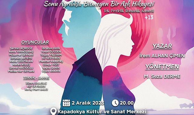 Nevşehir Belediyesi Şehir Tiyatrosu oyuncuları "Aşkın 2 Yüzü" adlı oyunu 2 Aralık 2023 Cumartesi günü sahneleyecek.