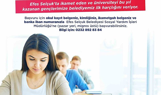 Selçuk Belediyesi, ilçede ikamet eden ve Yükseköğretim Kurumları Sınavı'nı bu yıl kazanan gençlere destek amacıyla "İlk harçlıklarınız bizden" kampanyası ile sosyal yardım kapsamında harçlık dağıtacak.Eğitime her zaman önem veren ve destek olan Selçuk Belediye Başkanı Filiz Ceritoğlu Sengel, konu ile ilgili olarak sosyal medya hesaplarından "Üniversite sınavı kazanarak yüksek öğrenim hayatına başlayacak gençlerimizi tebrik ediyoruz. Gençler yolunuz açık olsun. İlk cep harçlığınız da bizden olsun" notuyla bir paylaşım yaparak Efes Selçuk'un yeni üniversite öğrencilerini sevindirdi.Selçuk Belediyesinin yükseköğrenime başlayan gençlere sunduğu harçlık desteğinden yararlanmak isteyen öğrencilerin okul kayıt belgesi, kimlik, ikametgâh belgesi ve banka IBAN numaraları ile Selçuk Belediyesi Sosyal Yardım İşleri Müdürlüğü'ne başvurmaları gerekiyor. Başvuru öncesinde detaylı bilgi almak isteyen öğrenciler (0232)-892 83 84 numaralı telefondan ilgili birime ulaşabilir.