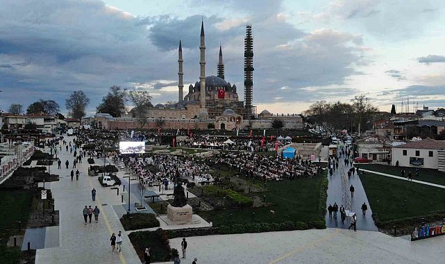 Edirne Valiliğinin katkılarıyla Selimiye Camii meydanında düzenlenen iftar programına Diyanet İşleri Başkanı Ali Erbaş'ın da katılımıyla 5 bin kişi iftarda bir araya geldi.