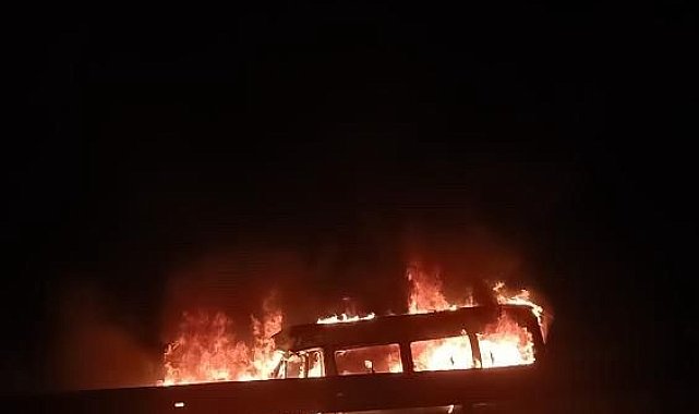 Bursa'da seyir halindeki servis minibüsü alev alev yandı, büyük bir faciadan dönüldü. O anlar ise kameraya yansıdı.Yangın, merkez Osmangazi ilçesi İstanbul-Bursa yolu Dürdane rampasında meydana geldi. Dürdane rampasında seyir halinde olan servis minibüsünün şoförü, araçtan dumanlar çıktığını görünce yol kenarına park etti. Dumanlar bir süre sonra yerini alevlere bıraktı. Yoldan geçenlerin ihbarı üzerine olay yerine itfaiye, sağlık ve jandarma ekibi sevk edildi. Jandarma ekipleri yolu bir süreliğine trafiğe kapattı. İtfaiye ekiplerinin müdahalesiyle yangın söndürüldü. Yangında servis minibüsü kullanılamaz hâle gelirken, minibüsün boş olması büyük bir facianın önüne geçti. Yanan servis minibüsü çekici yardımıyla yoldan kaldırılırdı. Yol, bir süre sonra trafiğe açıldı.