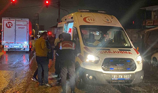 DÜZCE(İHA) – Düzce'de yağmur nedeniyle kayganlaşan yolda otomobil ile servis aracının çarpıştığı kazada 2 kişi yaralandı.Kaza, D-100 karayolu Kapıcı kavşağı ışıklı kavşak mevkiinde meydana geldi. Alınan bilgilere göre, Düzce istikametinden Sakarya istikametine giden V.G.'nin kullandığı 34 PY 4981 plakalı otomobil ile aynı yönde giden M.Y. idaresindeki 81 S 0638 servis aracı yağış nedeniyle kayganlaşan yolda çarpıştı. Trafik kazasında 2 sürücü yaralandı. 112 Acil Çağrı Merkezine yapılan ihbar üzerine bölgeye sağlık, polis ve jandarma ekipleri sevk edildi. Yaralı sürücülere ilk müdahale olay yerine gelen sağlık ekipleri tarafından yapıldı. Yaralılar ardından Atatürk Devlet Hastanesine kaldırılarak tedavi altına alınırken, durumlarının iyi olduğu öğrenildi.Kazayla ilgili inceleme başlatıldı.