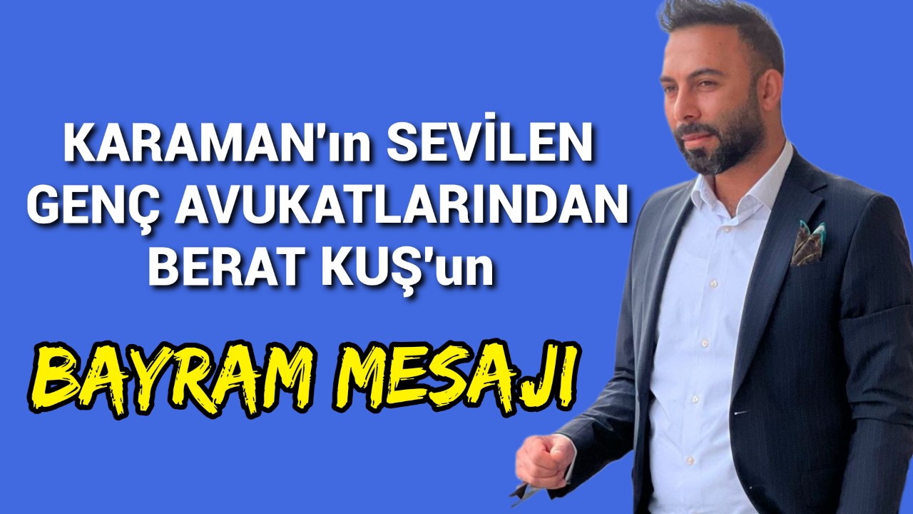 Karaman'ın sevilen avukatlarından Berat Kuş, Ramazan Bayramı dolayısıyla yayımladığı mesajla bayramın barış, huzur ve kardeşlik getirmesini diledi.