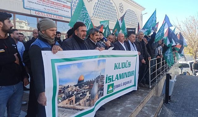 Şırnak'ta İsrail'in Gazze'ye yönelik saldırılarına tepki göstermek için toplanan Sivil Toplum Kuruluşu (STK) temsilci ve üyeleri protesto düzenledi.Hür Dava Partisi (HÜDA PAR) öncülüğünde bazı STK'ların desteğiyle Cuma Namazı sonrası Yeni Mahalle Geylani Camisi avlusunda toplananlar, İsrail'in Gazze Şeridi'ne yönelik saldırılarını protesto ederek boykot çağrısında bulundu. Filistin bayrakları taşıyan katılımcılar, İsrail ve ABD karşıtı slogan attı, tekbir getirdi. Kur'an-ı Kerim tilavetinin ardından HÜDA PAR üyesi Mücahit Tatar, yaptığı açıklamada, İsrail'in Gazze'ye saldırılarına 'dur' demek için bir araya geldiklerini söyledi.Müslüman kardeşlerinin yanında olacaklarını ifade eden Tatar, "Filistin ve Mescid-i Aksa'nın özgürlüğüne giden her meşru eylemin yanındayız ve destekçisiyiz. Bu yolda üzerimize düşen her türlü fedakarlığı yapmaya hazırız. Filistin'de her 10 dakikada bir çocuk hayatını kaybediyor. İsrail rejiminin Gazze'ye, Kudüs'e ve Mescid-i Aksa'ya karşı saldırılarını durduracak ciddi adımlar derhal atılmalıdır. İsrail'e karşı ekonomik, diplomatik, ticari ve stratejik tüm kanallar kapatılmalı. Gazze'ye acil olarak insani yardım koridoru oluşturulmalıdır" ifadelerini kullandı.Açıklamanın ardından Vaiz Selim Basutçu, Filistin'de hayatını kaybedenler için dua etti.