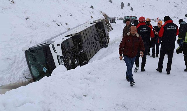 Sivas'ta cenaze yakınlarını taşıyan otobüsün devrilmesi sonucu ilk belirlemelere göre 20 kişi yaralandı.Edinilen bilgiye göre, kaza Sivas Merkez ilçeye bağlı Kurtlapa köyü yakınlarında meydana geldi. Asarcık köyünden cenazeden dönen Kadıköy Belediyesine ait 34 RT 099 plakalı Neoplan marka yolcu otobüsü, kar nedeniyle kayarak devrildi. Olay yerine çok sayıda ambulans ve kurtarma aracı sevk edildi.Sivas Valisi Yılmaz Şimşek, otobüste 50 yolcunun bulunduğunu, 20 yolcunun hafif şekilde yaralandığını, kazada ölü bulunmadığını belirtti.