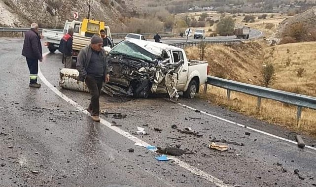 Sivas'ın Divriği ilçesinde pikap ile tırın çarpışması sonucu meydana gelen trafik kazasında 1'i ağır 2 kişi yaralandı.Edinilen bilgilere göre kaza, Çakırtarla köyü yakınlarında meydana geldi. S.G. idaresindeki 31 AKF 166 plakalı tır ile H.K idaresindeki 58 TT 112 plakalı pikap araç çarpıştı. Çarpışmanın etkisiyle pikap aracın sürücüsü araçta sıkıştı, yanında yolcu olarak bulunan Ş.Y. ise yaralandı. Durumun bildirilmesi üzerine olay yerine sağlık, jandarma ve itfaiye ekipleri sevk edildi. Araçta sıkışan sürücü sıkıştığı yerden çıkartılarak ambulansla Divriği Devlet Hastanesine kaldırıldı. Sürücünün durumunun ağır olduğu öğrenildi. Kaza ile ilgili inceleme başlatıldı.