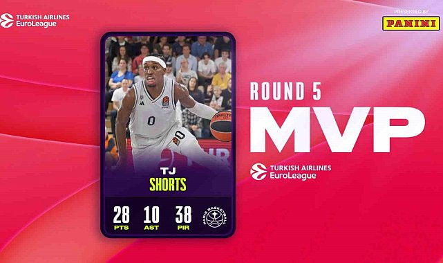 THY Euroleague'de 5. haftanın en değerli oyuncusu (MVP) Paris Basketball'un ABD asıllı Kuzey Makedonyalı oyuncu TJ Shorts oldu.THY Euroleague'de 5. haftanın sona ermesinin ardından haftanın en değerli oyuncusu da belli oldu. Euroleague'in resmi internet sitesinden yapılan açıklamada, Paris Basketball'un deplasmanda mücadele ettiği Monaco'yu 87-80'lik skorla mağlup ettiği karşılaşmada takımının galibiyetinde büyük rol oynayan ABD asıllı Kuzey Makedonyalı basketbolcu TJ Shorts'un haftanın MVP'si seçildiği belirtildi. Shorts'un mücadelede 28 sayı, 10 asist, 4 ribaund ile oynadı ve 38 verimlilik puanı aldı.27 yaşındaki basketbolcu kariyerinde ilk kez haftanın MVP'si seçildi.