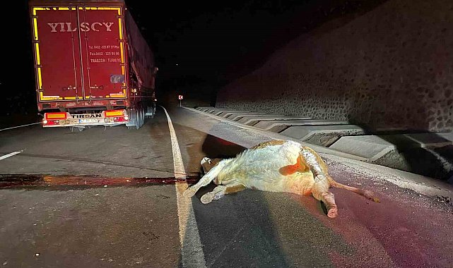 Bingöl'de tırın çarptığı inek telef oldu.Kaza, Elazığ-Muş karayolunda meydana geldi. Edinilen bilgiye göre, canlı hayvan taşıyan E.Ç. yönetimindeki 44 PP 574 plakalı tır, yola çıkan ineğe çarptı. Kazada, yaralanan olmazken inek telef oldu ve araçta maddi hasar meydana geldi. Küpesi olmadığı için sahibi tespit edilemeyen inek ekipler tarafından yoldan kaldırılırken jandarma ekipleri de olay yerinde kazayla ilgili inceleme yaptı.