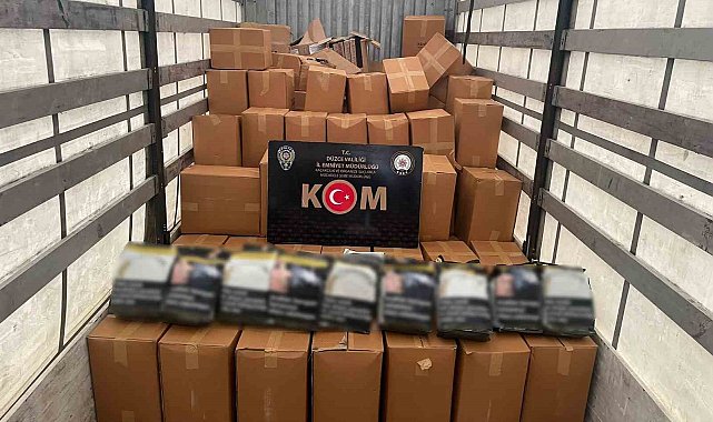 DÜZCE (İHA) – Düzce'de polis ekipleri tarafından durdurulan tırın dorsesinden 96 koli sahte bandrollü sarmalık kıyılmış tütün ele geçirildi.Düzce'de polis ekipleri tarafından kaçakçılığın önlenmesi için çalışmalar sürdürülüyor. Düzce İl Emniyet Müdürlüğü Kaçakçılık ve Organize Suçlarla Mücadele (KOM) Şube Müdürlüğü ekipleri tarafından tespiti yapılan Adıyaman plakalı tır durduruldu. Tırın dorsesinde yapılan aramada 96 koli içerisinde 768 kilo sahte bandrollü sarmalık kıyılmış tütün ele geçirildi. Tır sürücüsü şüpheli hakkında gerekli adli işlem yapıldı.