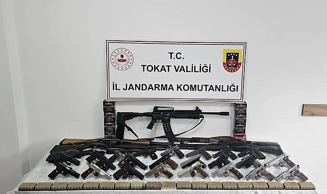 Tokat'ta jandarma ekipleri, düğün nişan gibi olaylarda silahla havaya ateş edilmesini önlemek amacıyla operasyon düzenledi. Operasyon çerçevesinde ruhsatlı ve ruhsatsız çok sayıda tabanca, tüfek ve mermi ele geçirildi.Tokat İl Jandarma Komutanlığı; düğün, nişan, asker eğlencesi gibi etkinliklerde silahla havaya ateş edilmesini önlemek amacıyla operasyon düzenledi. Jandarma ekiplerince 38 farklı adreste yapılan aramalarda; 16 adet ruhsatlı ve 8 adet ruhsatsız, çeşitli çap ve ebatlarda toplam 24 adet tabanca, 6 adet ruhsatsız av tüfeği, 27 adet şarjör, bin 595 adet çeşitli çaplarda mermi ele geçirildi. Aramalar sonucu 38 şahıs hakkında adli ve idari işlem başlatıldı.