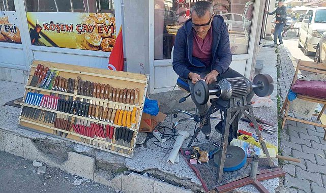 Kurban Bayramı öncesini bıçaklarını bileyletmek isteyen ilçe halkı, Tomarza ilçe çarşısı içerinde kurulan bıçak bileyicisinin önünde kuyruk oluşturdu. Aldıkları siparişleri sıraya koyan bıçak bileyicileri, aldıkları işi bitirmek için yoğun mesai harcıyor.