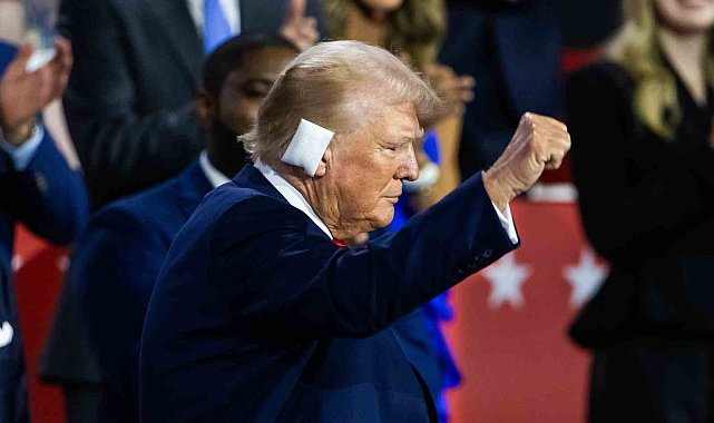 ABD'de suikast girişimi sonrası Cumhuriyetçi Parti Ulusal Kongresi'nde halkın karşısına ilk kez çıkan Donald Trump, destekçileri tarafından coşkuyla karşılandı.ABD'nin eski Başkanı ve Cumhuriyetçilerin başkan adayı Donald Trump, suikast girişimi sonrası halkın karşısına ilk kez çıktı. Wisconsin eyaletinin Milwaukee kentinde düzenlenen Cumhuriyetçi Parti Ulusal Kongresi'nde kulağı bandajlı bir şekilde salona giren Trump, destekçileri tarafından alkışlarla ve tezahüratlarla coşkulu bir şekilde karşılandı. Trump, yeni açıkladığı başkan yardımcısı adayı Cumhuriyetçi Senatör James David Vance ile parti üyelerini ve destekçilerini selamladı. Kongrede konuşma yapmayan Trump, destekçilerinin tezahüratlarına teşekkür ederek karşılık verdi.Donald Trump, Kongre açıldıktan kısa bir süre sonra gerekli oyu alarak Cumhuriyetçi Partinin resmi olarak başkan adayı seçildi.Donald Trump,13 Temmuz'da Pensilvanya eyaletinin Butler şehrindeki seçim mitinginde silahlı saldırıya uğramıştı. Trump sağ kulağından yaralanırken, mitinge katılan 1 kişi ölmüş, 2 kişi ise yaralanmıştı. Saldırıyı düzenleyen 20 yaşındaki Thomas Matthew Crooks, Gizli Servis tarafından olay yerinde öldürülmüştü.
